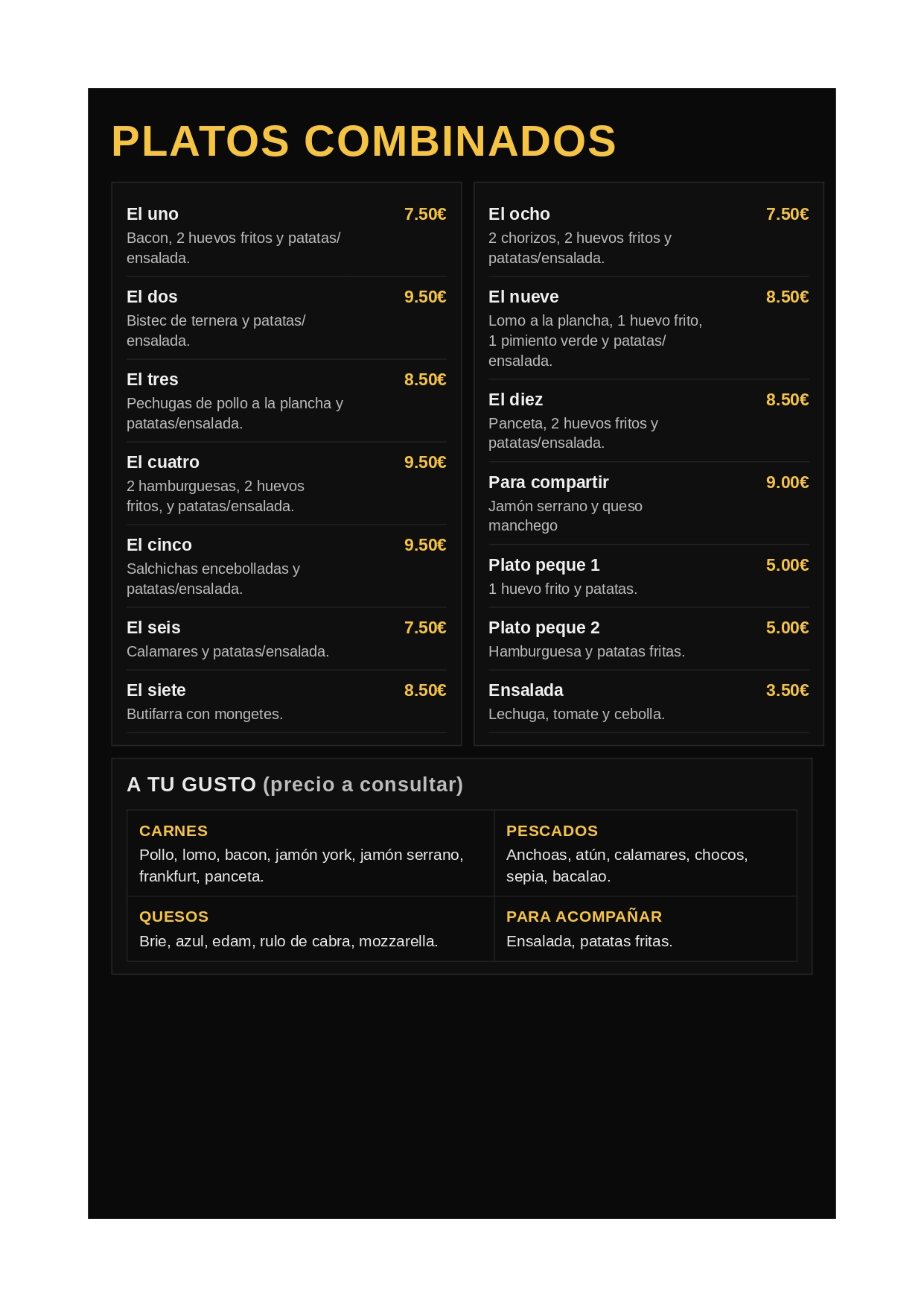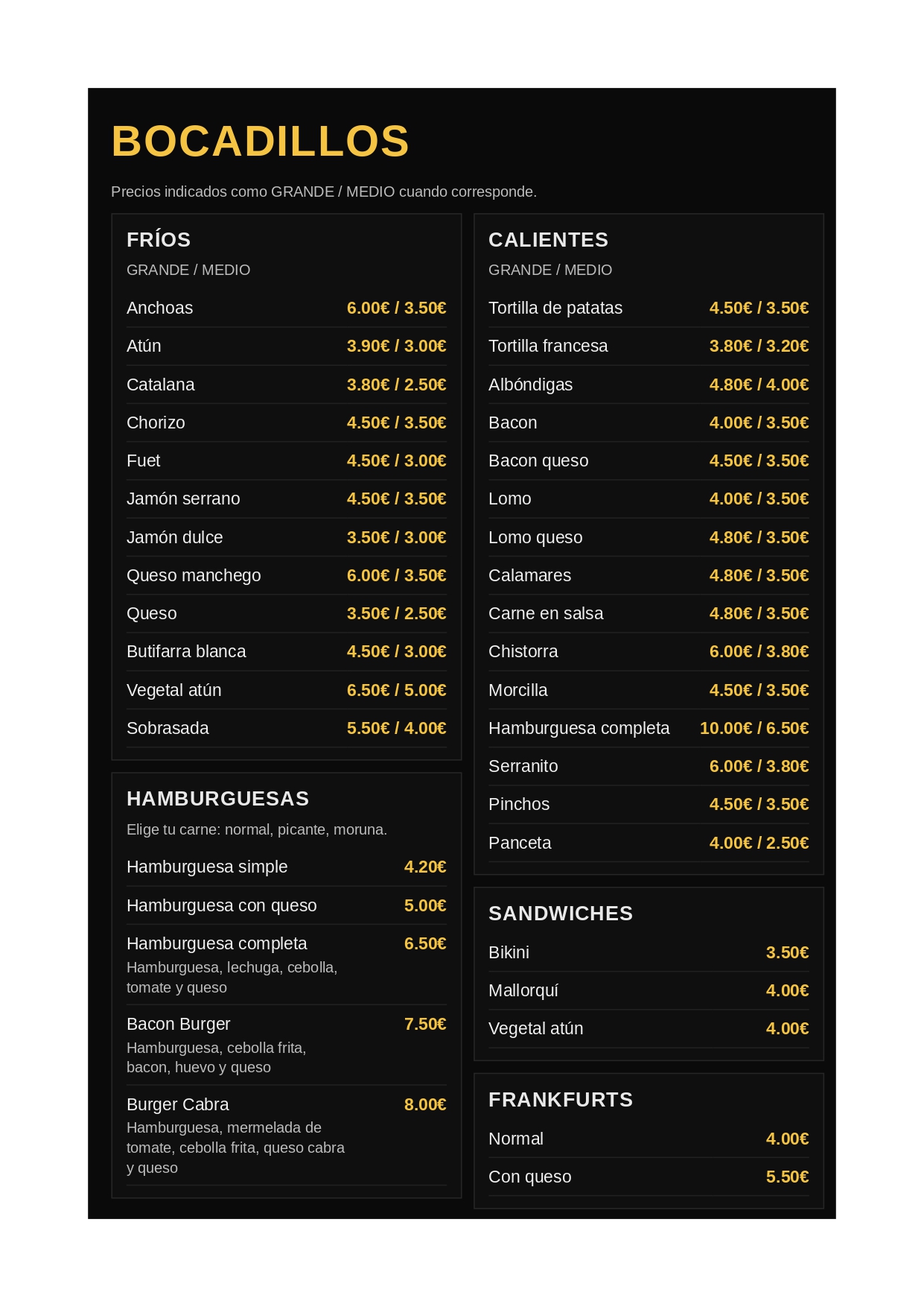 Hamburguesas caseras, hot dogs gourmet y tapas tradicionales.